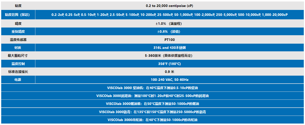 VISCOlab3000實驗室粘度計集成了一個電子加熱器和綜合的溫度控制系統,可提供連續的粘度和溫度讀數,可在12個20:1粘度范圍內進行測量。粘度可顯示為CP或CST,溫度可顯示為°C或°F。集成溫度控制允許用戶在高于環境溫度至356°F(180°C)和高于環境溫度至-40°C的任意設置下進行測量,并配備可選的冷卻套。該傳感器易于現場校準。可以預先校準多個工作范圍和產品設置。